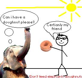 The time an elphant asked me for a dougnut,, luckly, i had one about my person and was able to oblige him
